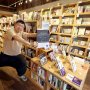 「ファンタジーなら、これもたまらない」とさらにもう1冊、蜂飼耳・文、牧野千穂・絵「うきわねこ」を案内くださる。「韓国じゃ日本の文庫本のような手軽な本は気に入られず、装丁に凝った奇麗な本が好まれるんですよー。アメリカは普通かな」と、とても美しい箔押し印刷の韓国の猫本を見せつつ書籍文化の3国比較話も。そんな話に興じつつ見渡すと、日本の絵本の塊の中に、私の愛読書「100万回生きたねこ」があって、ふと安心したり。楽しすぎて2時間以上滞在。