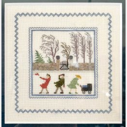 居間の壁に見慣れない刺繍絵があるのに気づく。帽子が飛ばされるほどの強い寒風に耐える人びとや木々が描かれたその絵は、今日のような寒い日にはうってつけだ。クロスステッチというのだろうか、凝った図柄ではないのだけれど、余白の多いところもぼく好み。だが……はたして義母に刺繍の趣味があっただろうか。