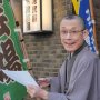 紙切りは落語と違って、日本語が通じない外国人にも喜ばれる芸だ。二楽はアメリカの日本語学校で披露したことがある。