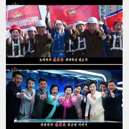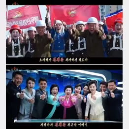 歌詞は「偉大な指導者、金正恩を歌おう/優しい父、金正恩を自慢しよう」といった具合で典型的なプロパガンダではあるものの、労働者、軍人、著名な女性アナウンサーまでもが集団で代わる代わる登場し、そろってサムズアップを決める様子は圧巻だ。金正恩の動画や静止画もふんだんに盛り込まれ、後継者と目される愛娘との視察シーンもしっかり挟まれている。