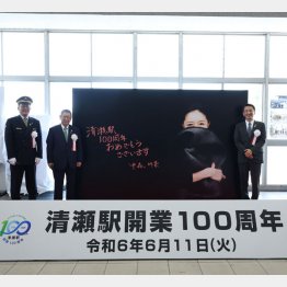 清瀬駅には明菜の近影がある大きなボードが飾られ、そこにはこんな直筆メッセージが添えられている。