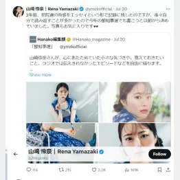 元乃木坂46でタレントの山崎怜奈(27)がWeb連載する『Hanako』のコラム「言葉のおすそわけ」で、「都知事選」と題して綴った内容がSNSで話題になっている。