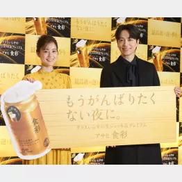 元乃木坂46の生田絵梨花(27)と歌手の山崎育三郎(38)がアサヒビール「アサヒ食彩」新CM発表会に登場した。 同製品を飲みたくなるシーンを聞かれると、2人とも“ライブ後”と答え、生田は同製品のキャッチフレーズ“もうがんばりたくない夜に”にちなんで「もう頑張りたくない時間から解放されるいい時間になる」と語った。途中、同製品の特徴的な泡を実食。山崎は「シュワワワワァ~♪ですよ」と歌を交えて感想を披露。生田は「もうがんばりたくない夜に楽しんでいただけたら」と締めくくった。