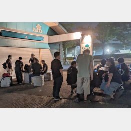 では、今年はどうか。大島氏によれば、配信に切り替わってからも一部のファンらは、その日の夜に代々木競技場周辺に集まり、みんなで配信を見るのが定番となっているという。今年も上映会はないにもかかわらず体育館周辺のベンチには十数人のファンが集まり、スマホやタブレット、ノートパソコンなどで配信を楽しんでいた(写真)。