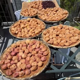 梅を漬ける瓶を買い、まずは煮沸消毒。そして天日に干す。瓶の中に塩、梅、塩、梅と段々になるよう入れて、台所の日の当たらない場所に数日置く。4、5日くらいで塩が溶けて梅がクターッとなってくる。また数日置いてもいい。干すための大きなザルがなければバットに梅を並べ、上にペーパータオルを敷いて汚れないようにしてベランダで3、4日干したら思ったよりおいしい梅干しができました。使っているのは梅と塩だけです。