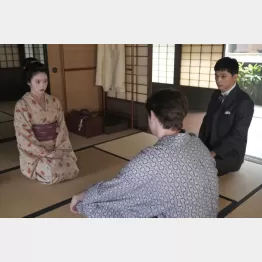 そんな「ブシムスメデナイ」と疑うヘブンは、「天国町のラストサムライの孫」と錦織の説明を受けて、態度を一変、ウェルカムムードに。お給金20円を前渡しするという太っ腹ぶりです。「ラストサムライ」がここで活きてきました。おじじさまも役に立ちました。