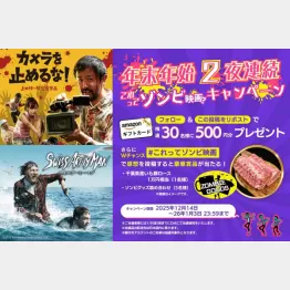 チバテレ公式X(@chiba3ch)のフォロー&リポストでAmazonギフト券500円分が抽選で30人に当たるほか、「#これってゾンビ映画」をつけて感想やコメントを投稿すると千葉県産いも豚ロース1万円相当やゾンビグッズが当たるダブルチャンス。詳細は、チバテレのXをチェック!