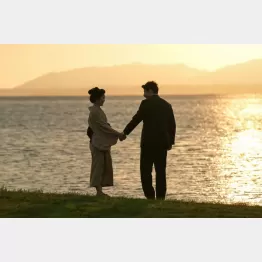 ラスト3分のところで主題歌「笑ったり転んだり」が流れてきました。最高のタイミングです。そのあと、夕陽を前に宍道湖を歩く2人。逆光なので表情は見えませんが、シルエットからも楽しそうな雰囲気が伝わってきます。