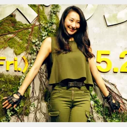 サバイバル映画の世界感に合わせ、ミリタリーな衣裳に身を包んだ浅田。露出は少ないながら体の線がくっきり浮き出たタイトなラインで、集まったカメラマンたちからは「(巨乳が)隠し切れてないな……」と感嘆の声が漏れた。