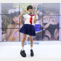 正直なところ、イベント取材前は、甘夏ゆずにあまり期待をしていなかった。「ヤングジャンプ」主催のアイドルユニットが水着グラビアを競う「サキドルエースSURVIVAL SEASON6」(16年12月)に出場し、10人の中から見事優勝、翌年表紙&巻頭グラビアを飾って話題にはなっていた。そういう意味ではグラビア界期待の逸材ではあるのだが、秋葉原でのグラドルイベントではほぼ必須の、イベント参加者による写真撮影タイムなし、取材時の衣装不明、開催時期も1月6日と正月明け第1週とスルーしがちな内容。イベント実施数が通常より少ない週じゃなかったら、取材を見送っていたかも。それがチャーミングなベリーショート、しかもミニスカセーラー服のコスプレ姿で登場したのです。