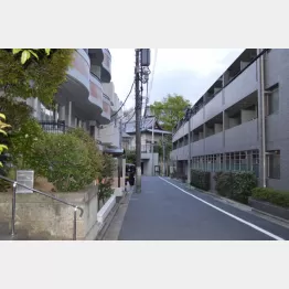 戸山公園脇にトラックを止めて撮影しようとしたら、バッテリーがあがり急きょ、電源を求めて新宿・戸山の閑静な住宅街(写真②)の雑居ビルに向かった。この中にクリスタル映像の事務方が入っているので、ケーブルを引いて照明とVTRの電源を確保しようというのだ。