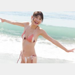 「水着撮影した函館の海水浴場もとてもきれいで素の表情ばかり。実家にいる愛犬・ヴィトンくんも一緒に撮影したりして自然と表情が和らぎましたね。函館でも泳げるんですよ」