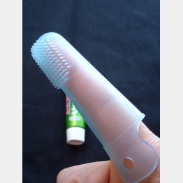 しかし、結果は思い描いていたような磨き心地ではなかった。素材はしなやかなシリコーンゴム。指サック状になっているので、人さし指にかぶせて使用する。指先の腹になる部分に長さ2~3ミリの細かい突起が整然と並んでいる。これがブラシ部分なのだが、軟らかすぎて、強く磨いてもまるで磨けた感じがしない。
