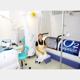 吉野歯科では、診療室のすぐ隣にカプセルが置かれ、治療とセットで予約できる。カプセル利用料は10回分の回数券だと2万円(税抜き)とお手頃で人気だという。