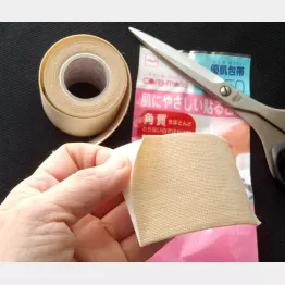 見た目は5センチ幅の肌色のガーゼ素材で、くるくる巻かれている。使うときは裏の紙を剥がして肌に貼るのだ。
