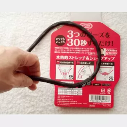 黒いシリコーン製のストレッチチューブで、うたい文句は「1回3ポーズを30秒するだけ」――。さっそく説明書にある「30秒のびのび体操」を試してみた。