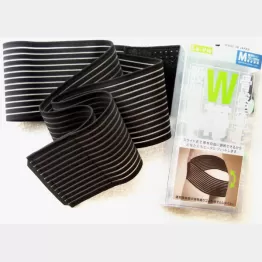 腰痛持ちが多いとあって、骨盤矯正ベルトが数多く売られている。そのひとつを試してみた。幅10センチ、長さ90センチの特殊織りのゴム生地の帯で、腰回り約72~100センチに対応する男女兼用。骨盤矯正と股関節保護が目的の商品だ。
