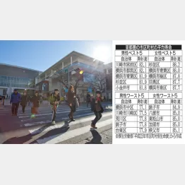 表に示すように、男性では川崎市宮前区と横浜市都筑区が82.1歳でトップに立っています。最下位は横浜市中区(77.1歳)で、ちょうど5歳の差があります。都筑区や青葉区は、横浜市の北西部に位置し、川崎市宮前区と接しています。これらの地域は高級住宅エリアとして、また住民の平均所得が高いエリアとしても県内外に名が通っています。
