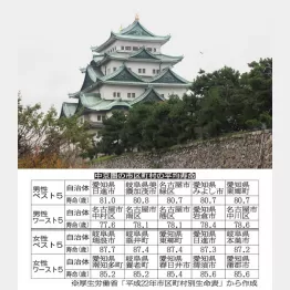首都圏と関西圏に挟まれ、微妙な立ち位置にある中京圏(愛知全県と岐阜県南部、三重県北部)。日本列島の中央に位置しているからなのか、平均寿命に関しても、男女とも日本人の平均値(男性79.9歳、女性86.4歳)あたりに収まっています。しかも域内の市区町村間には、寿命の格差がほとんどありません。