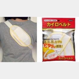 形は旅行などの貴重品入れであるポケットベルトと同じ。違いはポケットのフタが簡易的なこととベルト部分の半分がゴムでできており、マジックテープでとまること。貼るタイプより割安な貼らない使い捨てカイロを使うので長い目でみれば経済的。白金カイロを入れて使うこともできる。