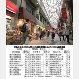 全般的に「住みやすい」といわれる自治体の数字が低い傾向がみられます。ただし、所得との関係は微妙です。平均所得が全国1位の港区は男性が97.6、女性ではなんと116.0です。女性のこの数字は、実は足立区(107.6)よりも高いのです。所得とがん死の確率は、必ずしもリンクしていないようです。