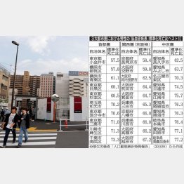 まず首都圏です。東京都小金井市が57.5で、ベストワンに輝いています。小金井市は、全国の市区のなかでもトップ。首都圏ワーストワンの福生市が177.6ですから、同じ東京都多摩地区のなかで、脳卒中の死亡リスクが3倍以上も違っていることになります。