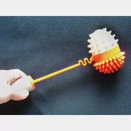 長さは28センチとコンパクトで、肩をたたく球体は片面が心持ちとがった卵形。とがった方を使うと多少強く感じる。150グラム弱という適度な重さがあるので、少し反動をつけて落とすだけでちょうどいい強さになってくれる。