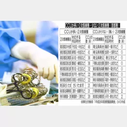 表は首都圏のCCUが多い・少ない2次医療圏をまとめたものです。まず東京都ですが、全部で265床を有しています。しかし、そのうちの225床は都内(区部)に集中しているのです。都下にはたった40床しかありません。1位は区中央部医療圏。ここには千代田区、中央区、港区、文京区、台東区が属しています。実はこのエリア、日本最大の大学病院激戦地なのです。東大、東京医科歯科大、順天堂大、日本医大、日大、東京慈恵会医大の6大学が、大学病院(本院)を構えています。それに加えて、聖路加国際病院をはじめとする有名病院が目白押し。1位になるのも当然でしょう。