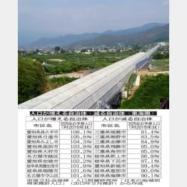 愛知県では東三河の北部一帯(新城市など)が深刻です。〈表〉には載せていませんが、愛知県東栄町が76.5%で、東海エリアのワースト1位になっています。東栄町の人口は、10年で4分の3に減ってしまうことになります。