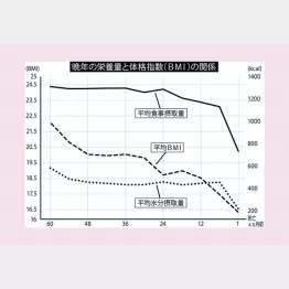 国内4カ所の介護保険施設で死亡した入居者131人を対象に、1日の食事量をカロリーベースに換算した数字、1日の水分量、BMI(体格指数)の変化を5年前までさかのぼってデータ分析したもので、対象者は全員が口から食べ、人工的な水分・栄養補給は施されないまま死に至っている。