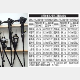 内視鏡の割合がもっとも高いのが宮城県、全胃がん手術の約6割を内視鏡が占めています。一方、最下位は沖縄県で、4割に達していません。宮城県の胃がん検診率は48.8%で全国2位。対する沖縄県の検診率は39.5%で16位でした。