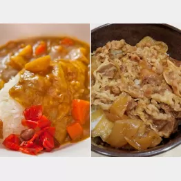 牛丼の原材料は、「牛肉とタマネギ」がメーン。カレーも各社により異なりますが、「野菜」の次に牛肉などの肉類がきているものがほとんどです。