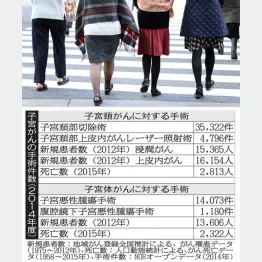 子宮頚がんの手術件数の合計は約4万人。患者は毎年1500人近く増え続けているので、2014年度には3万4000人前後に達したと思われますが、すべての患者が手術を受けたとしても計算が合いません。実は円錐切除を行っても、がんが再発するケースが少なからずあるため、2回目や3回目を受ける患者がいるのです。
