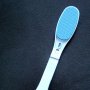 長さ約41センチ、幅7センチのフェルトのような厚みのある柔らかい布で作りは単純だが、実際に端にある穴に親指を入れてくるりと巻き付けるだけで、なかなかいい感じで固定できた。親指を穴に入れたら、手の甲側に布をたらすのが鍵。あとは自然に巻けばOK。巻き方や締め具合によって好みの安定感が得られることに感動した。ただ、巻き始めに引っ張り過ぎると親指の血行が悪くなる気がするので要注意だ。