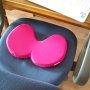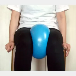 使い方の説明書もわかりやすく、簡単なトレーニングばかり。膝に挟んで内股を鍛えたり、脇に挟んだり、両手で持って頭の後ろから投げるような動作をしたり……といった具合だ。椅子に置いたボールの上に座ってバランスをとるトレーニングは破裂が心配で恐る恐るになるが、案外丈夫で空気も抜けない。