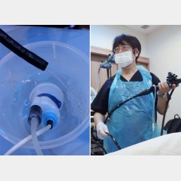 「通常の大腸内視鏡検査は『送気法』といって、内視鏡を挿入するときに2リットルくらいの空気を入れます。一方、水浸法は空気の代わりに100~200ミリリットルの水を流しながら内視鏡を挿入していきます。この方法でやると鎮静剤を使わなくても痛みがなく、送気法より安全に内視鏡を盲腸まで入れることができます」