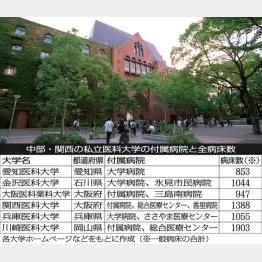 〈表〉の6大学のうち、大阪医科薬科大学を除く5校は、医学部以外、せいぜい看護学部を併設しているのみで、関東の7校とほぼ同じ構成になっています。大阪医科薬科大学は、16年度から大阪医科大学と大阪薬科大学が合併してできた大学です。どちらも合併前に完成年度に達しているので加えました。
