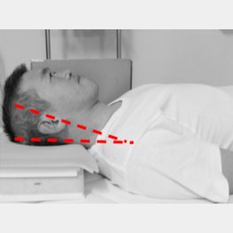 「対策その1は、寝ているときの姿勢をよくすることです。そのために“玄関マット枕”を作ります。玄関マットをZ形に折り畳み、その上に同じ幅に折り畳んだタオルケットを乗せる。枕にして横向きに寝たとき、ひたい、鼻、あご、胸の真ん中までが一直線になるようにタオルを足すなどして、高さを調節してください」(山田院長)