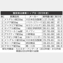 【糖尿病治療薬】上位100位で年間使用料は60億5000万錠