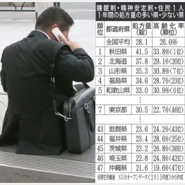 睡眠剤・精神安定剤の処方量の全国平均は、1人当たり年間28.1錠です。