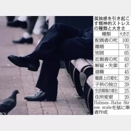 どんなときに孤独を感じるかは人それぞれ。しかし、孤独感と精神的ストレスが密接に関係していることは、間違いありません。ストレスの種類と大きさを分類したものに、有名な「ホームズ・ラーエのストレス指標(Holmes―Rahe Stress scale)」があります。人生で出合う、さまざまなストレスの大きさを、数値化したものです。国立循環器病研究センターのホームページにも載っているので、ご興味のある人はアクセスしてみてください。