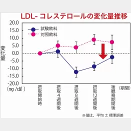 総コレステロール値、悪玉コレステロール値がともに低減