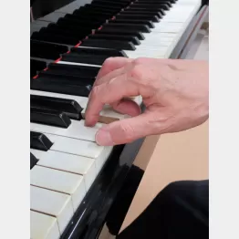 「ピアノ演奏では指が手のひら側に曲がる(巻き込む)人が多い。フォーカルジストニアは、ゆっくり弾くと症状が出にくくなります。SDEは、症状の出やすい楽曲で、最初は症状の消える速度で弾いてもらいます。そして、少しずつ速く弾けるように訓練していくリハビリ法です」