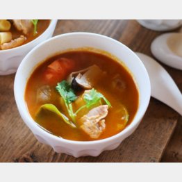 ご飯はごく小盛りにし、温野菜やキノコのサラダなども一緒に食卓に並べる。カレーは少なめに、サラダなどは多めにしてトータルでお腹いっぱいになるようにする。