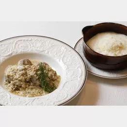 もう一品は牛乳を使ったリゾットです。使うのは冷蔵庫にある冷やご飯。お茶漬けも結構ですけど、牛乳で煮込んでチーズを加えることによって洋風に仕上げます。加える塩分はナチュラルチーズとパルメザンチーズによるものだけ。それでも十分、おいしく召し上がれます。
