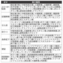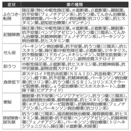 「複数の薬を併用することによって生じるこれらの症状は高齢者に多く、総称して薬剤性老年症候群と呼ばれます。厄介なのは、薬の影響がなくても、どの症状も高齢者に多く、薬剤性と気づきにくいこと。原因の薬も特定しにくいのですが、要注意の薬はあります。抗コリン薬とベンゾジアゼピン系の睡眠薬と抗不安薬です」