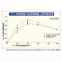 「私たちが実際に臨床研究によって検証した結果、乳酸菌PA-3株を摂取すると食後の血清尿酸値の上昇を有為に抑制することがわかりました。とくに腸管からの尿酸の再吸収を抑制することによって、結果として尿酸値を低い値で抑えることができたのではないかと思っています」