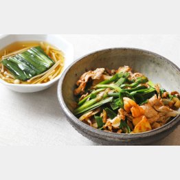 わたしたちが通常ニラと呼んでいるのは葉ニラのこと。他に黄ニラ、花ニラがありますが、今回は葉ニラを使って豚肉、キムチとの炒め物、おひたしの2品にします。