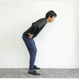 「背骨からではなく、股関節から曲げるようにしてください。腰に痛みがある人ほど、股関節を動かすことが苦手な状態にあるため、どうしても背骨から曲げようとしてしまうんですよね」