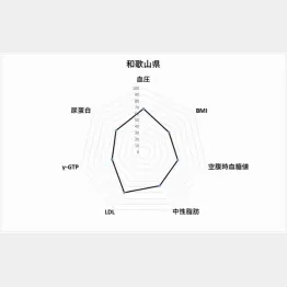 5位は和歌山県。40代では8位にランクインしており、不健康偏差値の上位県のひとつである。LDLコレステロールと血圧の偏差値が高いのが特徴だ。LDLコレステロールは全国2位にランクインしているし、血圧は全国3位となっている。和歌山県といえば梅干しが有名だ。梅干しには高血圧を抑える作用があると言われているが、はたしてどうなのだろう。ただBMIとγ‐GTPは全国平均並み、尿蛋白の偏差値もさほど高くない。